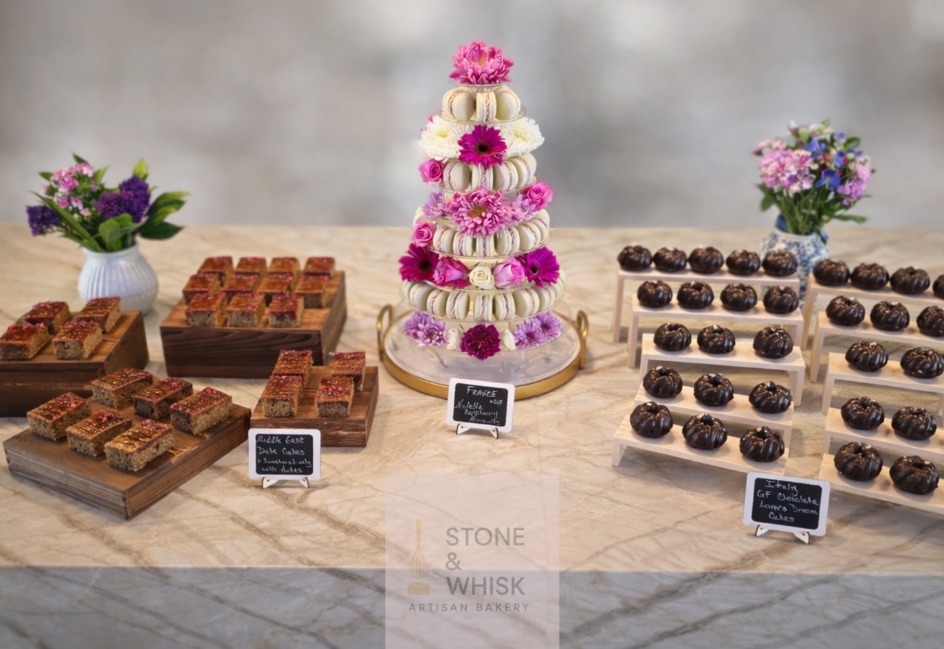 Delicate French confections with crisp shells and soft centers, filled with house-made buttercreams and ganaches.